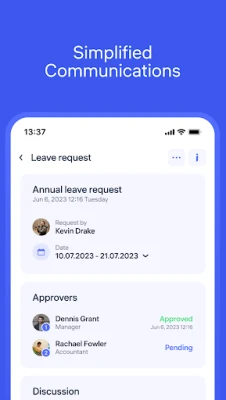 Το Clockster συγκεντρώνει τη διαχείριση αδειών και ενισχύει την εσωτερική επικοινωνία σε πρωτόγνωρο βαθμό. Διαχειριστείτε όλους τους τύπους αδειών — αναρρωτικές, μητρότητας, ημέρες ανάπαυσης, διακοπές — σε ένα κεντρικό σημείο, ορίζοντας κανόνες υπολοίπου για αυτόματους υπολογισμούς. Αυξήστε τη διαφάνεια των καθημερινών σας διαδικασιών ψηφιοποιώντας και ελέγχοντας προκαταβολές, οικονομικές ενισχύσεις, μπόνους, επιδόματα, αιτήματα εξόδων και αγορές. Πέρα από τα βασικά, το Clockster διευκολύνει τη διαχείριση τακτικών διαδικασιών όπως υπερωρίες, αλλαγές συνθηκών εργασίας και αιτήματα για ελλείπουσες καταγραφές παρουσίας. Ενισχύστε την επικοινωνία με άμεσες ανακοινώσεις και ενημερώσεις που μπορούν να στοχεύουν συγκεκριμένα άτομα, τμήματα ή τοποθεσίες. Με ένα από τα πιο προηγμένα εργαλεία συνομιλίας ενσωματωμένο σε κάθε λειτουργία, κάθε αίτημα, εργασία ή ανάρτηση διαθέτει τη δική του ενότητα συζήτησης, εξασφαλίζοντας σαφήνεια και πρόσβαση στο αρχείο καταγραφής. Τέλος, το Clockster προσφέρει ένα κεντρικό αποθετήριο για όλους τους εταιρικούς κανόνες και τις πολιτικές, διασφαλίζοντας ότι όλα τα μέλη της ομάδας είναι συνεχώς ενήμερα.
