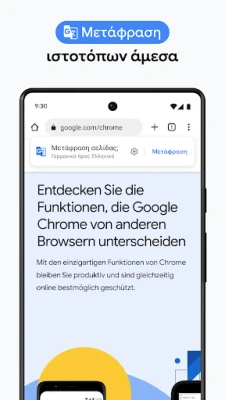 Ανακαλύψτε τον κόσμο του διαδικτύου με απαράμιλλη ευκολία και νοημοσύνη, μέσα από την πύλη του Chrome. Ως ο αξιόπιστος σύντροφός σας, το Chrome φέρνει τον πλούτο της Google απευθείας στις άκρες των δαχτύλων σας. Εξερευνήστε οποιοδήποτε θέμα με την ταχύτητα και την ακρίβεια της Αναζήτησης Google, χρησιμοποιώντας ακόμα και τη φωνή σας για αβίαστη αναζήτηση. Δείτε κάτι ενδιαφέρον γύρω σας; Αξιοποιήστε το Google Lens μέσω της κάμεράς σας για άμεση αναγνώριση και πληροφορίες. Ξεπεράστε τα γλωσσικά εμπόδια με την ενσωματωμένη Μετάφραση Google, μετατρέποντας ολόκληρες ιστοσελίδες σε περισσότερες από 130 γλώσσες με ένα απλό άγγιγμα, διευρύνοντας τους ορίζοντές σας χωρίς κόπο.