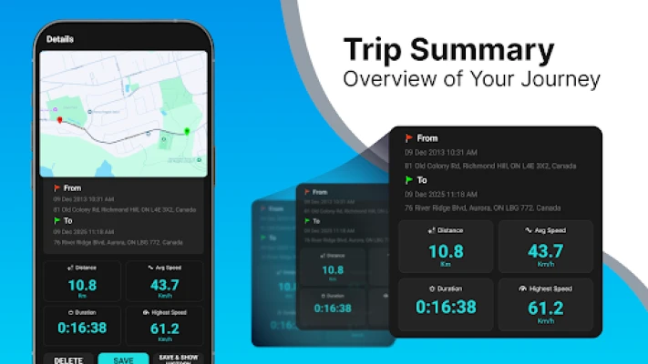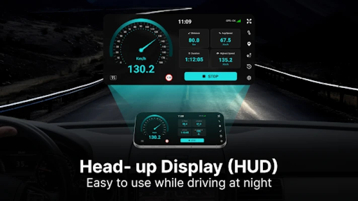 Η ασφάλεια συναντά την τεχνολογία με τη λειτουργία Head-Up Display (ΧΟΥΔ) του Ταχύμετρο GPS ΧΟΥΔ - Οδόμετρο, προβάλλοντας την ταχύτητα στο παρμπρίζ σας για οδήγηση χωρίς απόσπαση προσοχής, ιδίως τη νύχτα. Επιπλέον, καταγράψτε κάθε λεπτομέρεια του ταξιδιού σας με τον ενσωματωμένο ιχνηλάτη ταχύτητας και οδόμετρο. Παρακολουθήστε την τελική σας ταχύτητα, τη μέση ταχύτητα και τη συνολική απόσταση που διανύσατε. Και για να παραμείνετε πάντα εντός των ορίων, οι προσαρμόσιμες ειδοποιήσεις ορίου ταχύτητας σας ενημερώνουν έγκαιρα, βοηθώντας σας να οδηγείτε υπεύθυνα και να αποφύγετε ανεπιθύμητα πρόστιμα.
